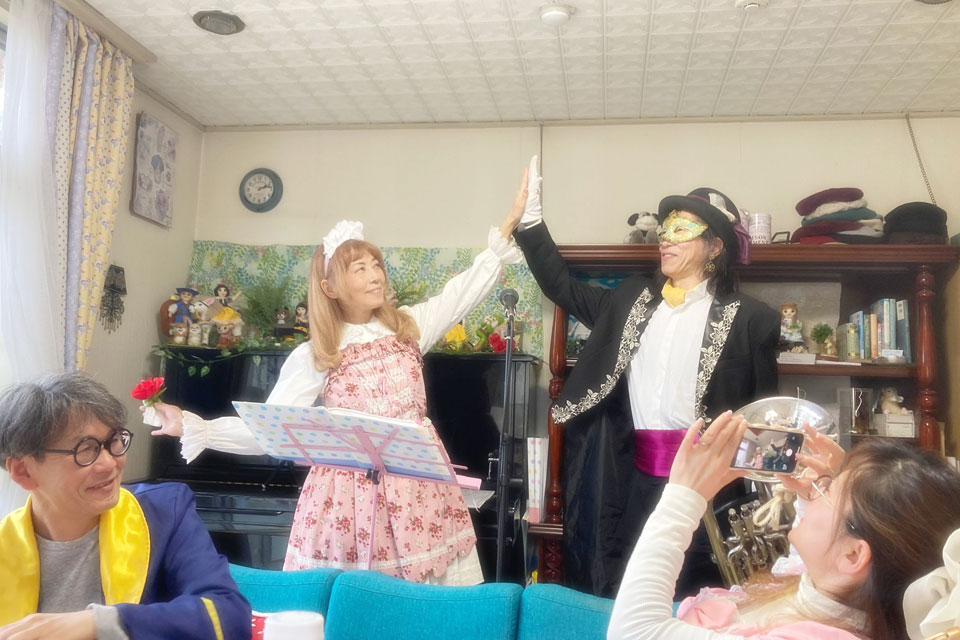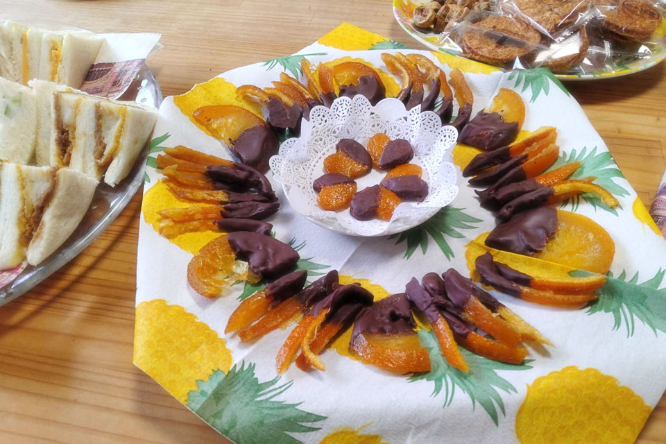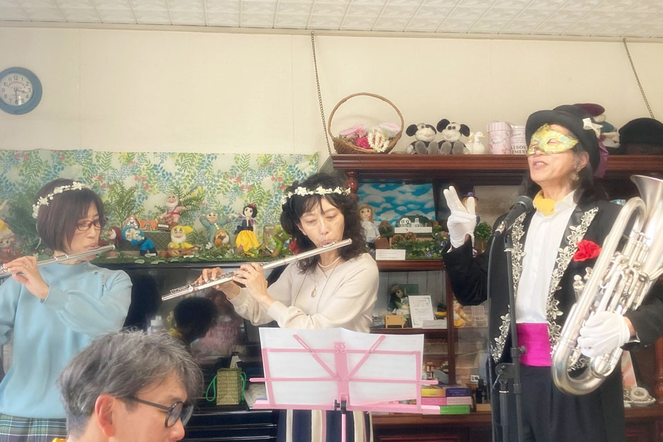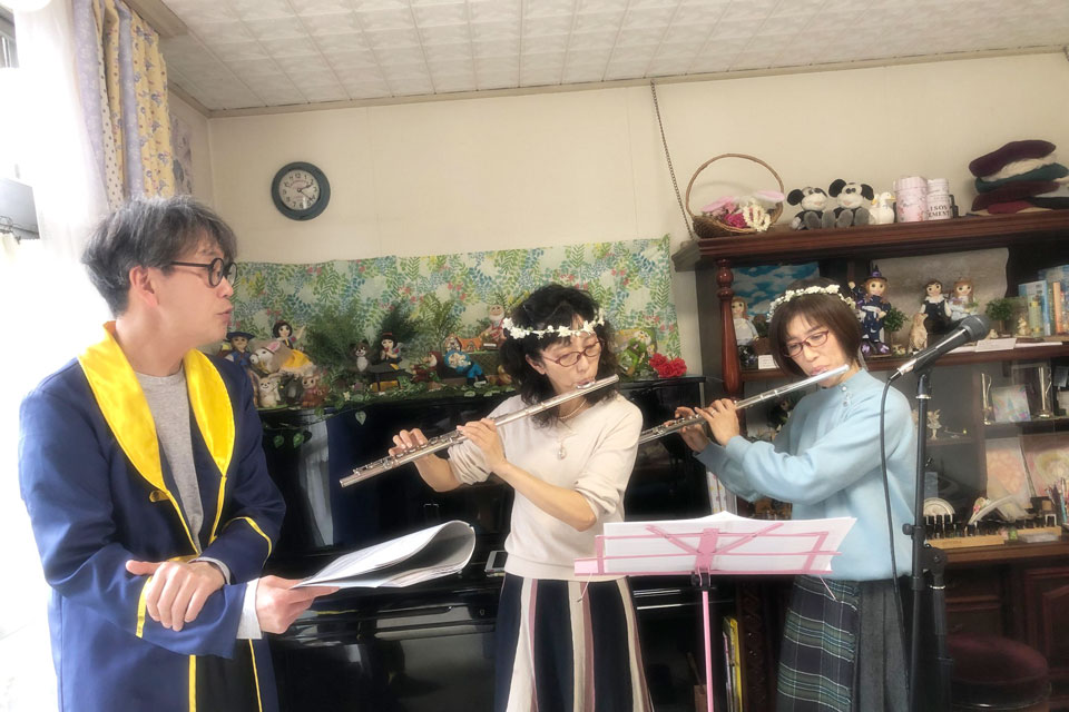 千葉市「Aterier Laffee」で開催 《妖精の家・バレンタイン音楽会♪》 にお邪魔しました。 サンドウィッチをひとくちサイズに切ったり、料理を運んだり 今回も「執事」係... 働いております。💦 本日のゲストさんたちと 庭のみかんの「みかん酒」 サンドウィッチ 家主メーテルさん手製のオランジェット みかん狩り (≧▽≦) 家主と執事によるウェルカム演奏 最近得意のキメポーズも (*^▽^*) ゲストさんの演奏 いろんな組み合わせで演奏が続きます。 ありがとうございました。