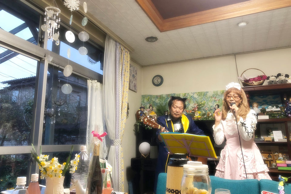 千葉市「Aterier Laffee」で開催 《妖精の家・バレンタイン音楽会♪》 にお邪魔しました。 庭のみかんの「みかん酒」 サンドウィッチ パラダイス酵母のぶどうジュース ユーフォー仮面りんごジュース「紅の夢」 そして、家主メーテルさん手製のオランジェット みかん狩り (≧▽≦) 家主と執事によるウェルカム演奏 最近得意のキメポーズも (*^▽^*) ゲストさんの演奏 いろんな組み合わせで演奏が続きます。 オマケ画像(その1) 働くユーフォー仮面 & 働くメーテル オマケ画像(その1) 撮影会の一部 《奥さまお花をどうぞ》 シリーズ ありがとうございました。