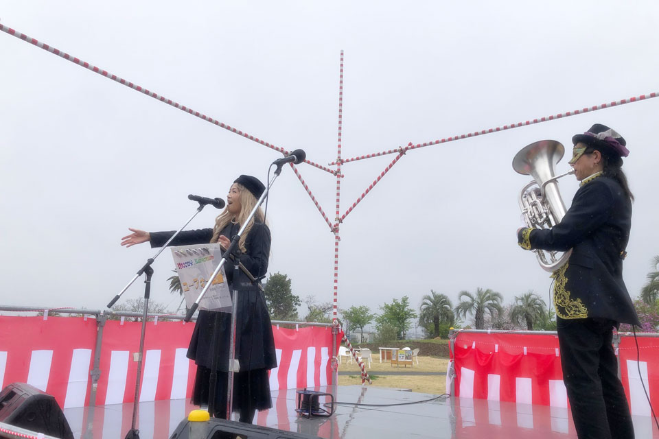 あいにくのお天気でしたが、雨が降っても演奏を続けましたよ。