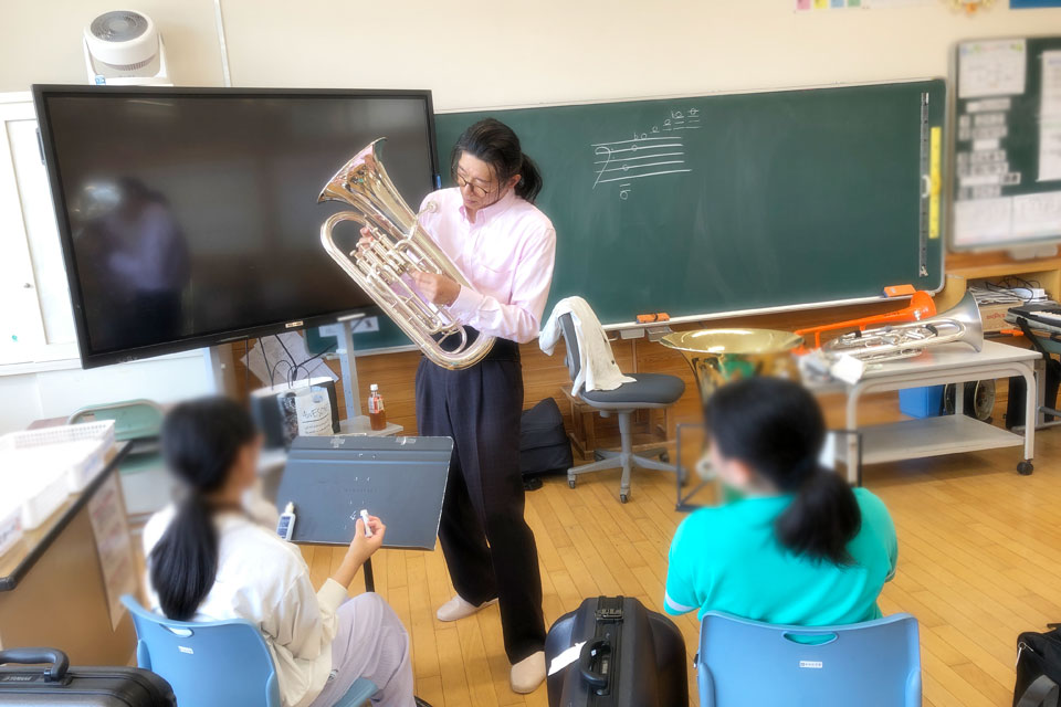 湯沢市の《湯沢西小学校》で開催の楽器講習会