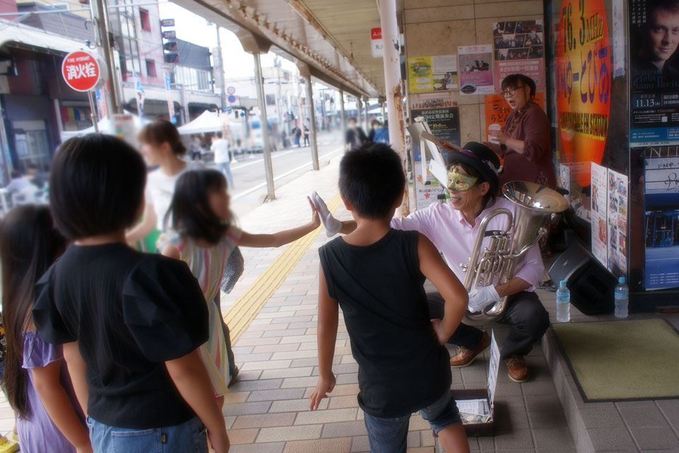 湯沢市《サンロード商店街》で開催の《ストリートマルシェ》 《FMゆーとぴあ》さんのご厚意で、勝手にサプライズライブを行いました。(≧▽≦) 約30分ほどのステージ 足を止めて聴いていただきありがとうございます。 ビックリしたのは 子どもたちが積極的に「投げ銭」してくれたこと 「投げ銭文化」もイイよね。 投げ銭のお礼は、もちろん「演奏」と「タッチ!」 ありがとうございました。 これぞ《音楽のまち ゆざわ》の姿だと思うんだけどな~ 関係者の皆さん、いかがでしょう?