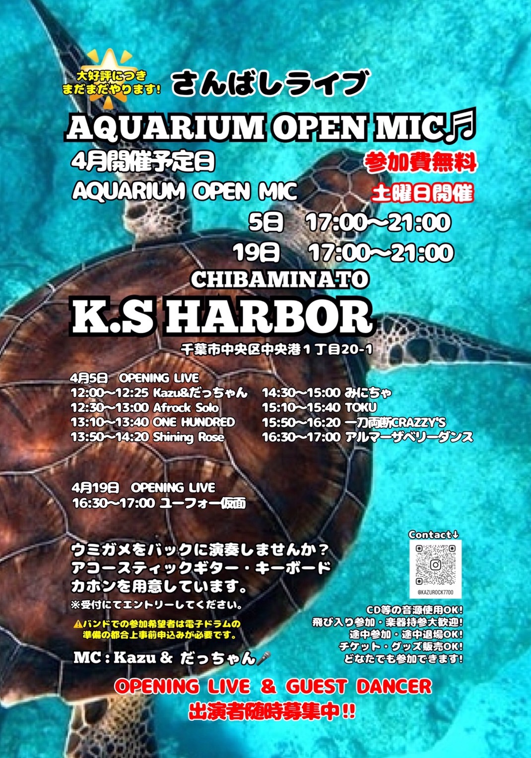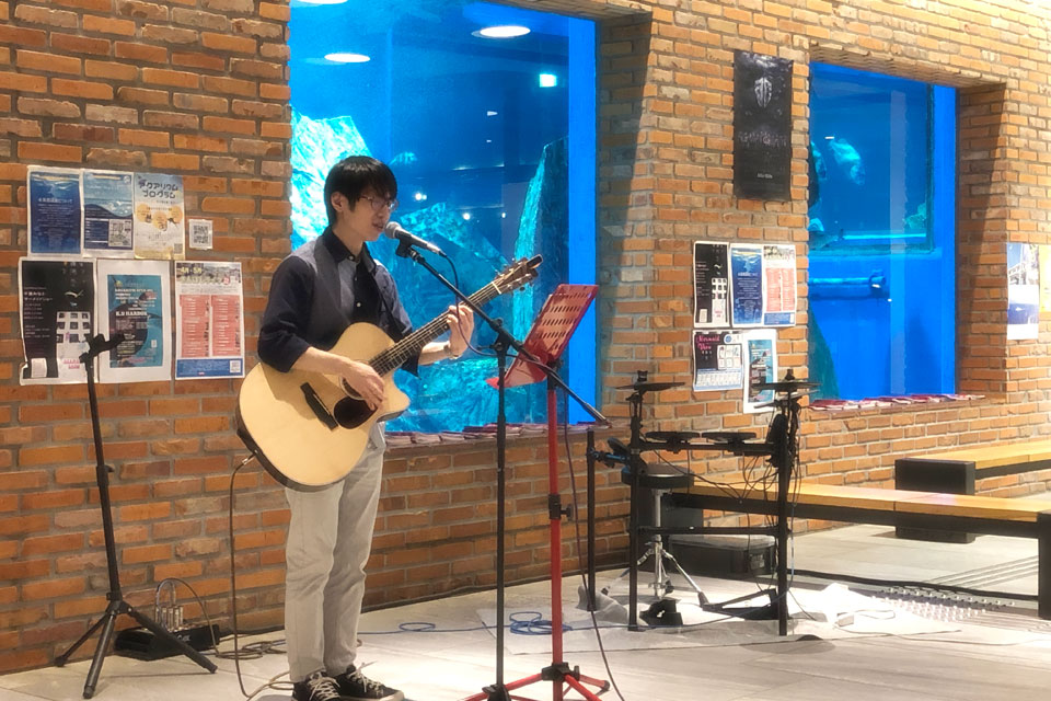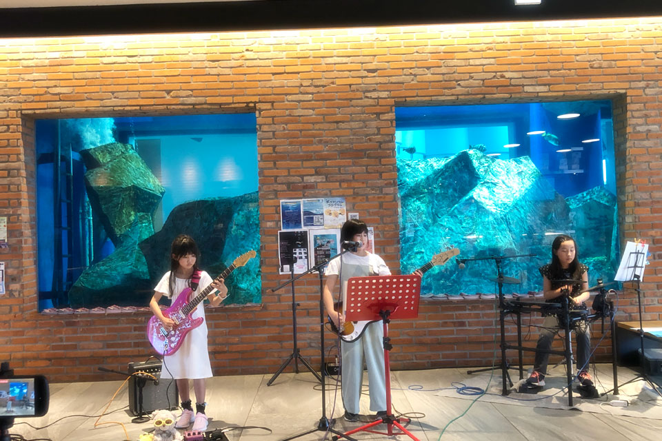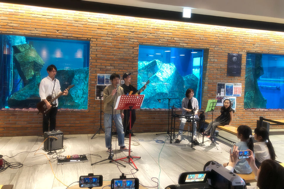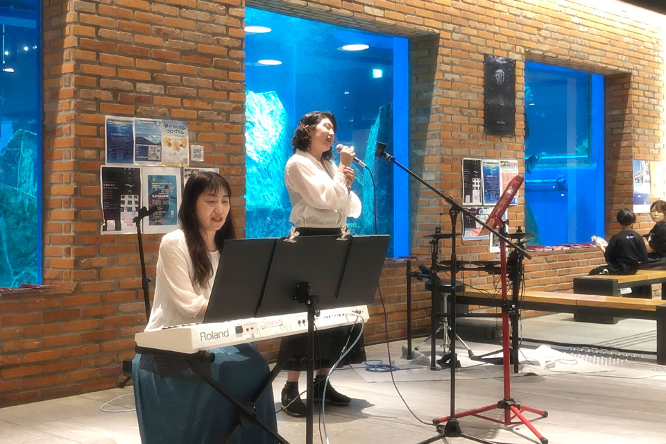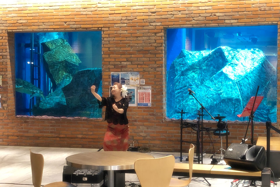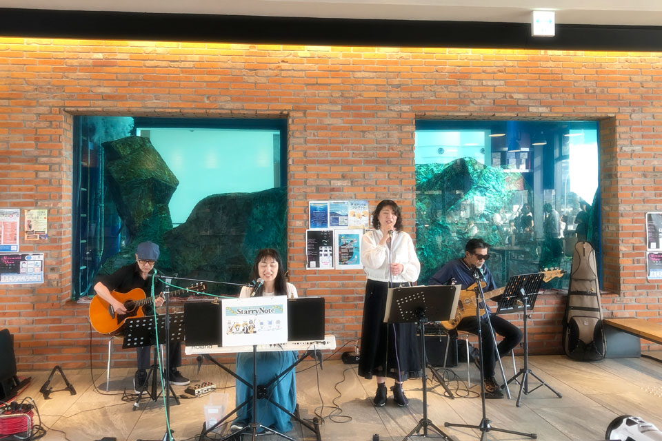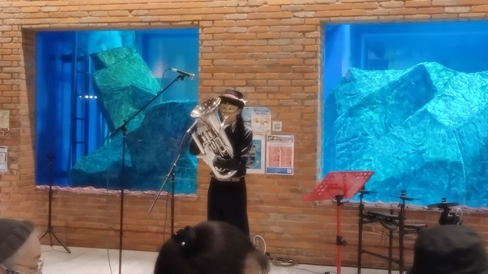 千葉市千葉みなと《ケーズハーバー》 《Aquarium OPEN MIC》に参加しました。 オープンマイク開催前に、Opening Live のステージをいただきました。 ありがとうございます。 同じく Opening Live の《Starry Note》さん ここから Open Mic ウミガメ君も ときどき姿を見せてくれます。