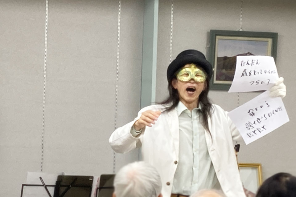 豪華メンバーの楽団による伴奏で歌を歌います。