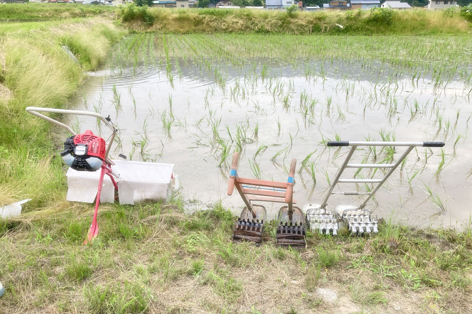 マネジャー氏、《秋田 自然&有機栽培農学校》 早朝除草作業に行ってきました。 今日の器具は3種類 右のアルミ製の器具はマネジャー氏の私物なので、これを使用(笑) 1枚おわったら、《音の肥料作戦》 演奏をはじめたら カエルや鳥たちが 一斉に鳴き出しましたよ😊 感激の瞬間 ! 除草機をキツくかけたので、稲も寝ちゃったのがあります。 起き上がってくるはずですがちょっと心配...💦 音の肥料で起き上がってこい~ おつかれさまでした。