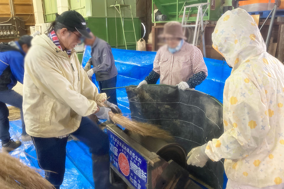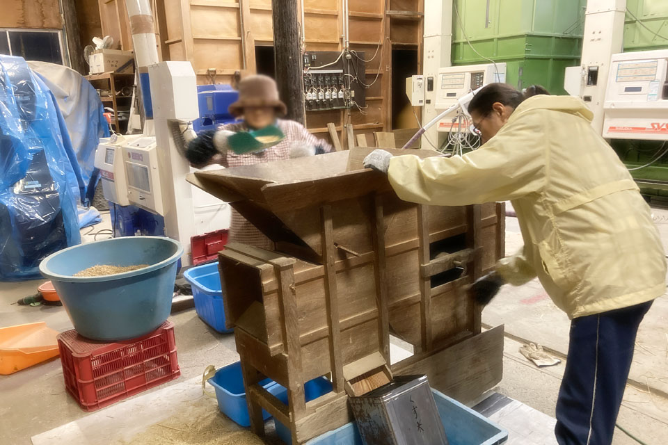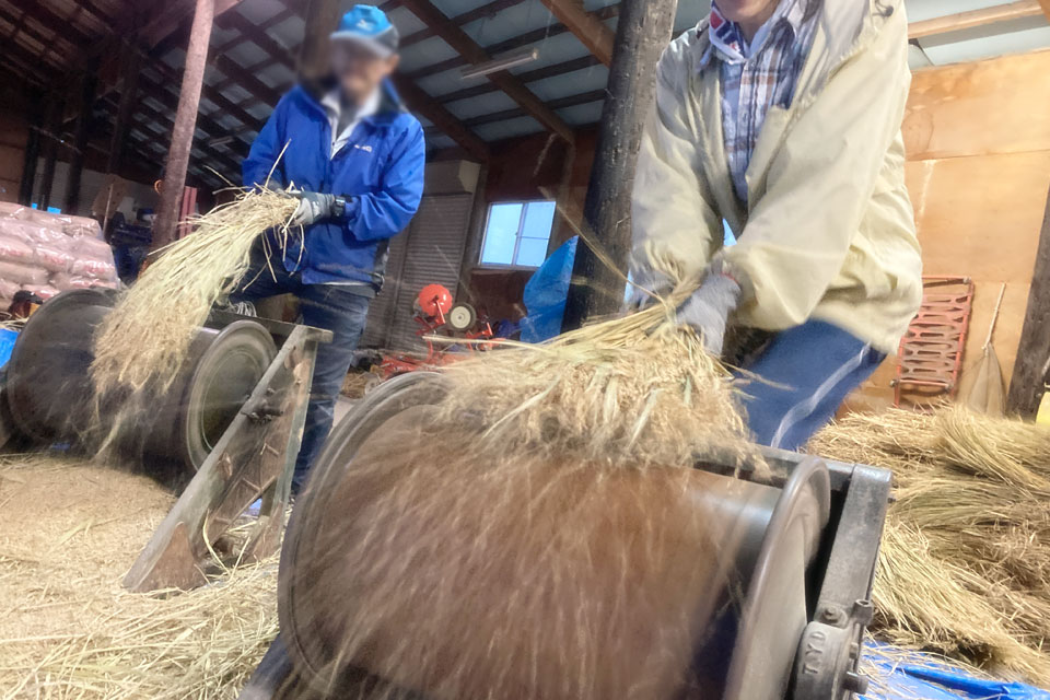 羽後町「ふかがわ彩園」で、来年作付ける種籾の脱穀作業に参加しました。