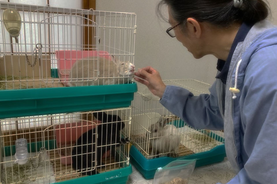 ウサギちゃんにご飯をあげるマネジャー氏(笑)