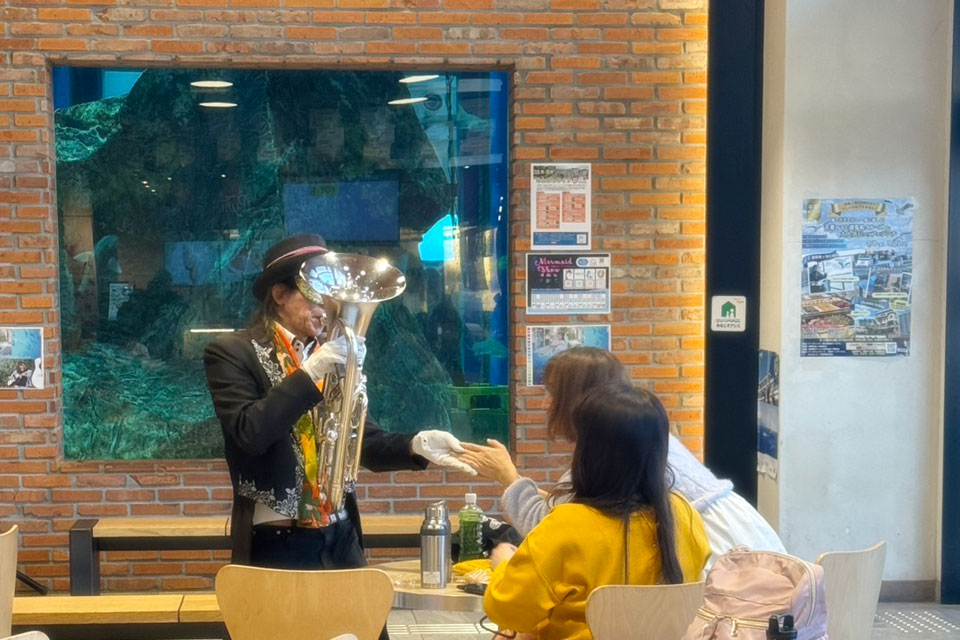 千葉市《ケーズハーバー》 毎月恒例《さんばしライブ》に参加しました。 《Kazu&だっちゃん》 綿菓子ショー ファンの女子たち 鍵盤ハモニカデュオ《ジャムシャンテ》さん 鍵盤ハモニカ 頭でも弾けます。。。 《team DADAKO》さん 《team DADAKO》《ジャムシャンテ》《ユーフォー仮面》コラボ 楽しそうな女子3名 つまらなそうな男子2名(笑) もっといいところ撮ってくださいよ~💦 (≧▽≦) 最後は《ユーフォー仮面》 今回は「演歌系」に振ってみました。 演歌といえば... 吹き握手 (≧▽≦) 記念撮影 今回もありがとうございました