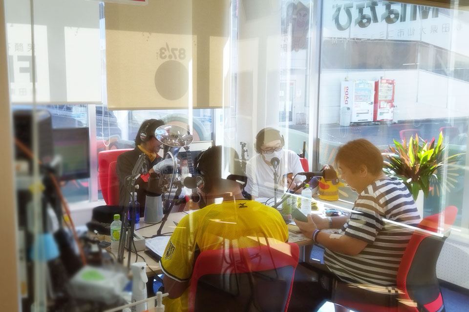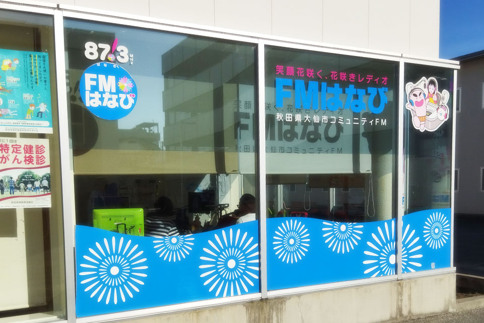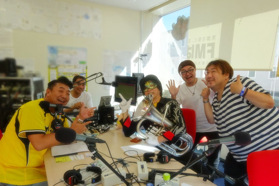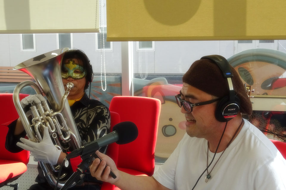 秋田県大仙市のローカルFM局 「FMはなび」 さんにお邪魔しました。 ユーフォー仮面、初登場です!! 番組は《OMAGARI★SUPER★ARINA》 局長の福原さま パーソナリティの デニーロ・オオトモさま ゲストの皆さま、ありがとうございました。(*^▽^*) スタジオ内、生演奏もあります。 ぶっちゃけトークに、 天気予報コーナーの GUNJI さんと、ほぼ即興デュオもやっちゃいます。 FMはなび 広場から、こんな感じでスタジオが見えます。
