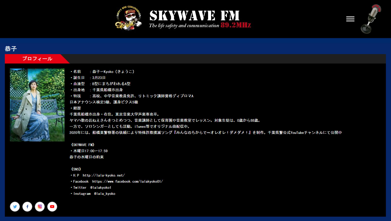 千葉市のコミニュティFM《SKYWAVE FM》 【恭子の 水曜日の約束】にゲスト出演しました。 電話での出演です。 パーソナリティの恭子さま ありがとうございました。(*^▽^*) また呼んでください~