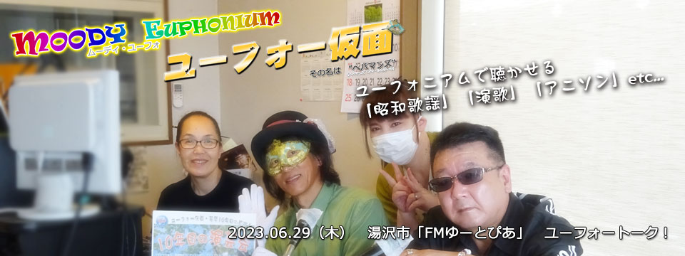 秋田県湯沢市のコミュニティFM局 「FMゆ~とぴあ」 さんにお邪魔しました。 ユーフォー仮面がラジオパーソナリティに初挑戦! 《ユーフォー仮面の ユーフォートーク!》(仮称) ゲストはマジシャンの「ミッキーハタ」さん、ピアニストの「ゆきのん」 写ってないけど「営業部長」氏 思ったより難しい...💦 FMゆーとぴあスタッフ、トッキー先輩のサポートをいただいて なんとか30分の生放送を乗りきりました。 ラジオでマジック!!? ...ケーブルテレビ用の録画もあったんです。