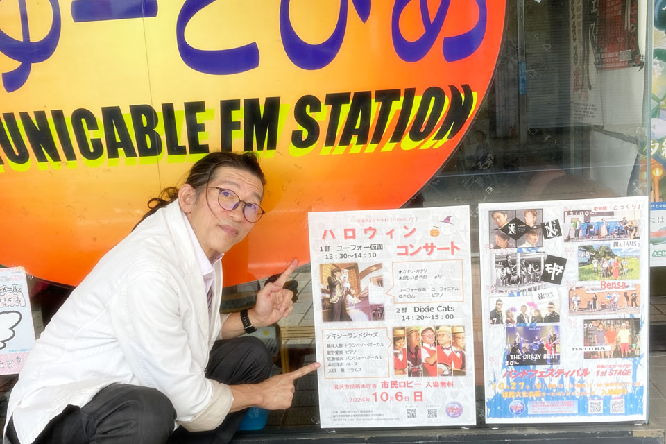 湯沢市のコミニュティFM局 《FMゆーとぴあ》 おしゃべりミュージックBOX にゲスト出演しました。 (※都合によりマネジャー氏が代理出演) パーソナリティは 原田真裕美さん ユーフォー仮面氏のフリをして スタジオ生演奏に挑むマネージャー氏(笑) ユーフォー仮面が出演するコンサートのポスター ありがとうございました。