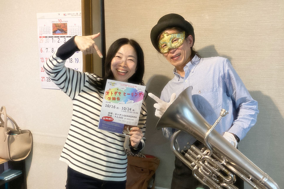 湯沢市のコミニュティFM局 《FMゆーとぴあ》 《今日も “Good Job!!” 生放送》 ゲスト出演しました。 パーソナリティは明代さん、お久しぶりです。。。 今回の話題は、ユーフォー仮面の《オトダマ(音霊)ヒーリング》 明代さんにもプチ体験いただきました。 ありがとうございました。